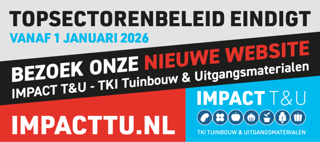 Het topsectorenbeleid stopt eind 2025, maar het innovatiebeleid gaat gewoon door. TKI blijft als uitvoerder verantwoordelijk voor de KIA Landbouw, Water, Voedsel én het IMPACT-programma. Dit betekent wel dat de website en nieuwsbrief van Topsector T&U eind van dit jaar verdwijnen.